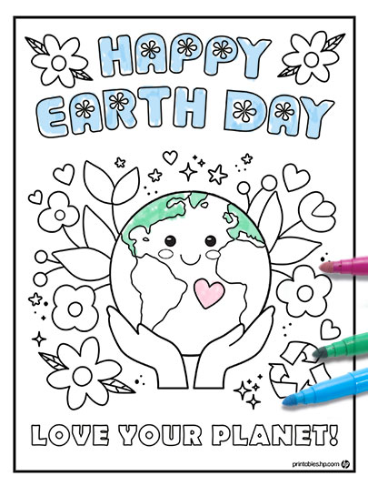 Página para colorear del Día de la Tierra Planet Love